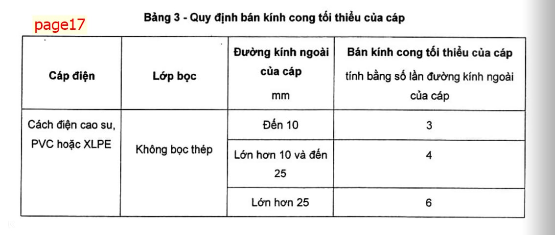 Page 17-TCVN9207-2012: Qui định bán kính cong của cáp